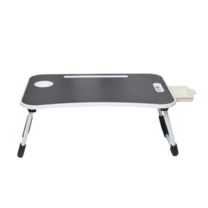 Amazon Basics Foldable Laptop Table with Cup Holder, Tablet Groove and Mini Drawer (Black)