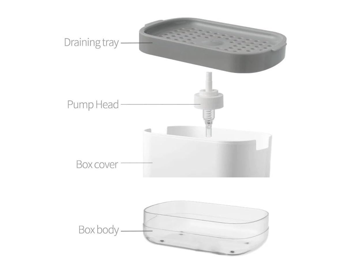 • 2 IN 1 SOAP DISPENSER HIGH-QUALITY MATERIAL: The kitchen soap sponge holder is made of premium ABS + PC transparent material, safe and BPA-free, environmentally friendly and healthy, corrosion-resistant. It comes into direct contact with liquids without undergoing any chemical reactions which is durable enough for you to use for long-time reuse.