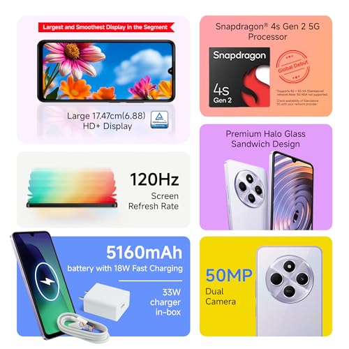 - High performance – Snapdragon 4s Gen 2 5G Processor | Large 17.47cm 120Hz Display | Upto 8GB RAM including 4GB Virtual RAM |128GB Storage | Fast Side fingerprint sensor